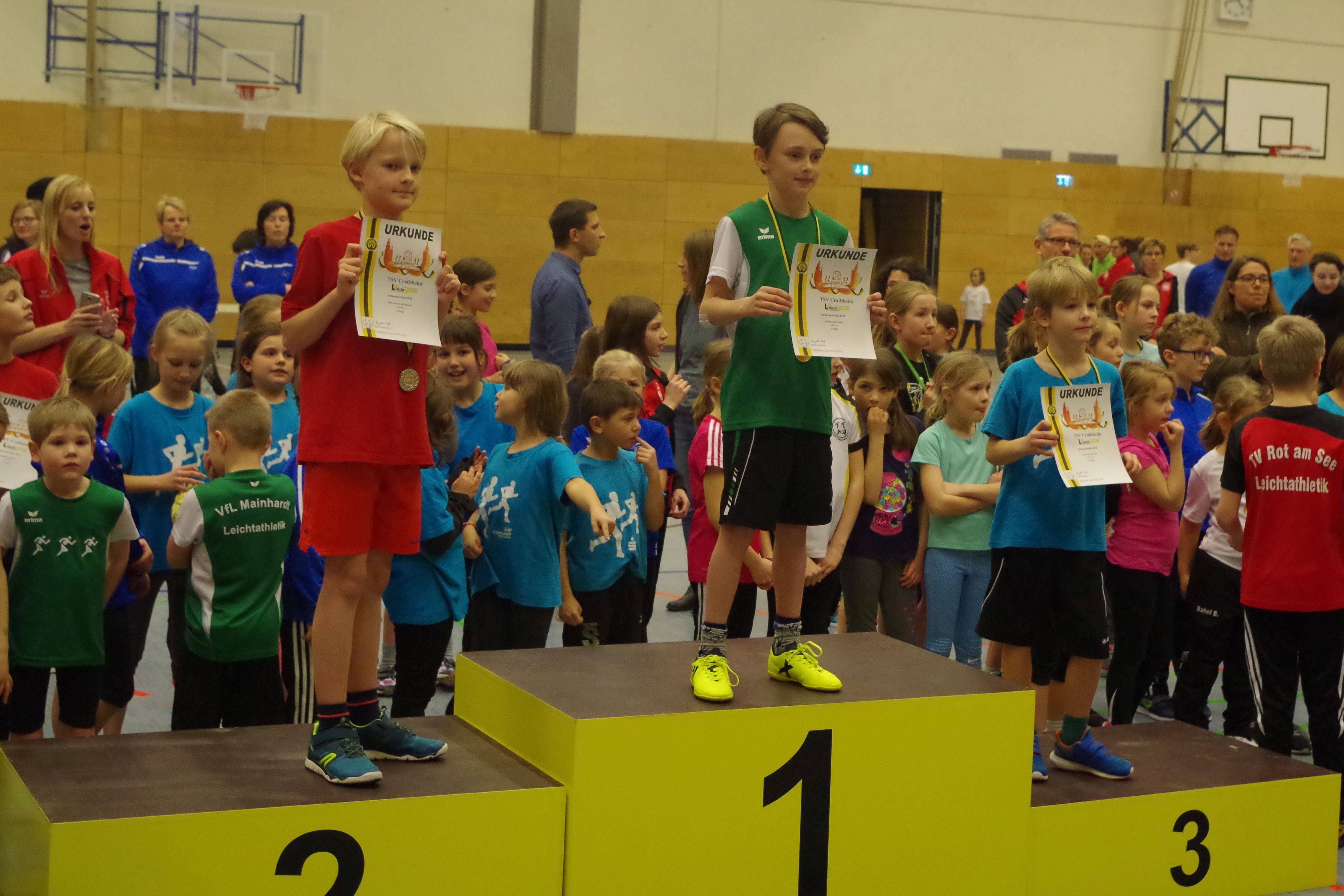 Neben der Hindernisstaffel und dem Drehwuf, die es für alle Altersklassen zu absolvieren gab, wurde für die U8 und U10 der Hochweitsprung und für die U12er der Hochsprung angeboten. Zum Abschluss des Wettbewerbs wurde dann ein Team-Biathlon (Lauf-Wurf-Lauf) für die U8er und U10er sowie ein 800m-Lauf für die Ältesten durchgeführt.